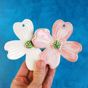 Dogwood Flower Ornament: Handmade Ceramic Pottery, Pink or White Glaze