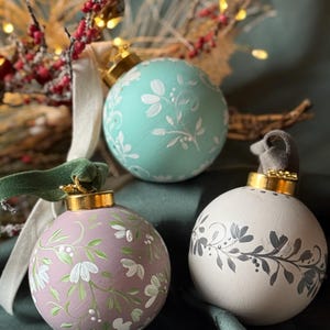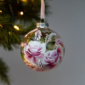 Hand Painted Ornament, floral ornament, Christmas ornament sets, painted ornaments, flower ornaments, shatterproof ornament, rose ornaments