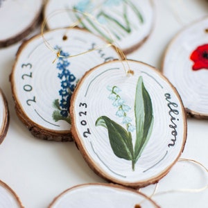 RESTOCKED Birth Flower Ornament, Birth Flower Gift, Handpainted Christmas Ornaments, Wood Slice Ornaments, Flower Ornaments, Birth Month