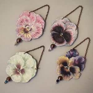 Vintage inspired pansy ornaments/ Antique style flower ornaments/ Botanical ornaments