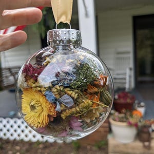 Dried Flower Filled Ornament Floral Cottagecore Christmas Decor Girly Unique Stocking Stuffer Ornament Exchange Teacher Gift Coworker Party