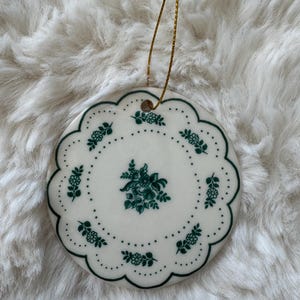 green Chinoiserie ceramic ornament, grandmillennial Vintage Floral toile Vintage Inspired Christmas Décor, Classic Preppy