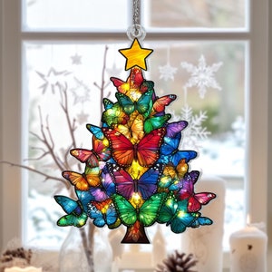 Butterfly Christmas Tree Suncatcher, Butterfly Christmas Ornament, Butterfly Ornament 2024, Gift Butterfly Lover, Butterfly Hanging Ornament
