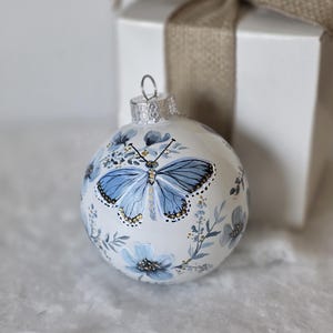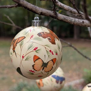 Decoupage Christmas Ornaments – Hand painted Butterfly Ornament – Botanical Ornament