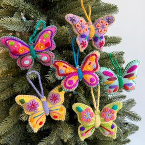 Butterfly Christmas Ornaments, Colorful Embroidered Wool, Fair Trade from Peru
