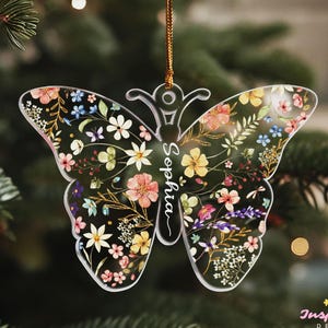 Decoupage Christmas Ornaments – Hand painted Butterfly Ornament – Botanical Ornament