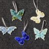 Hand Painted Butterfly Ornament: Blue Floral Glass Globe, Gift Box